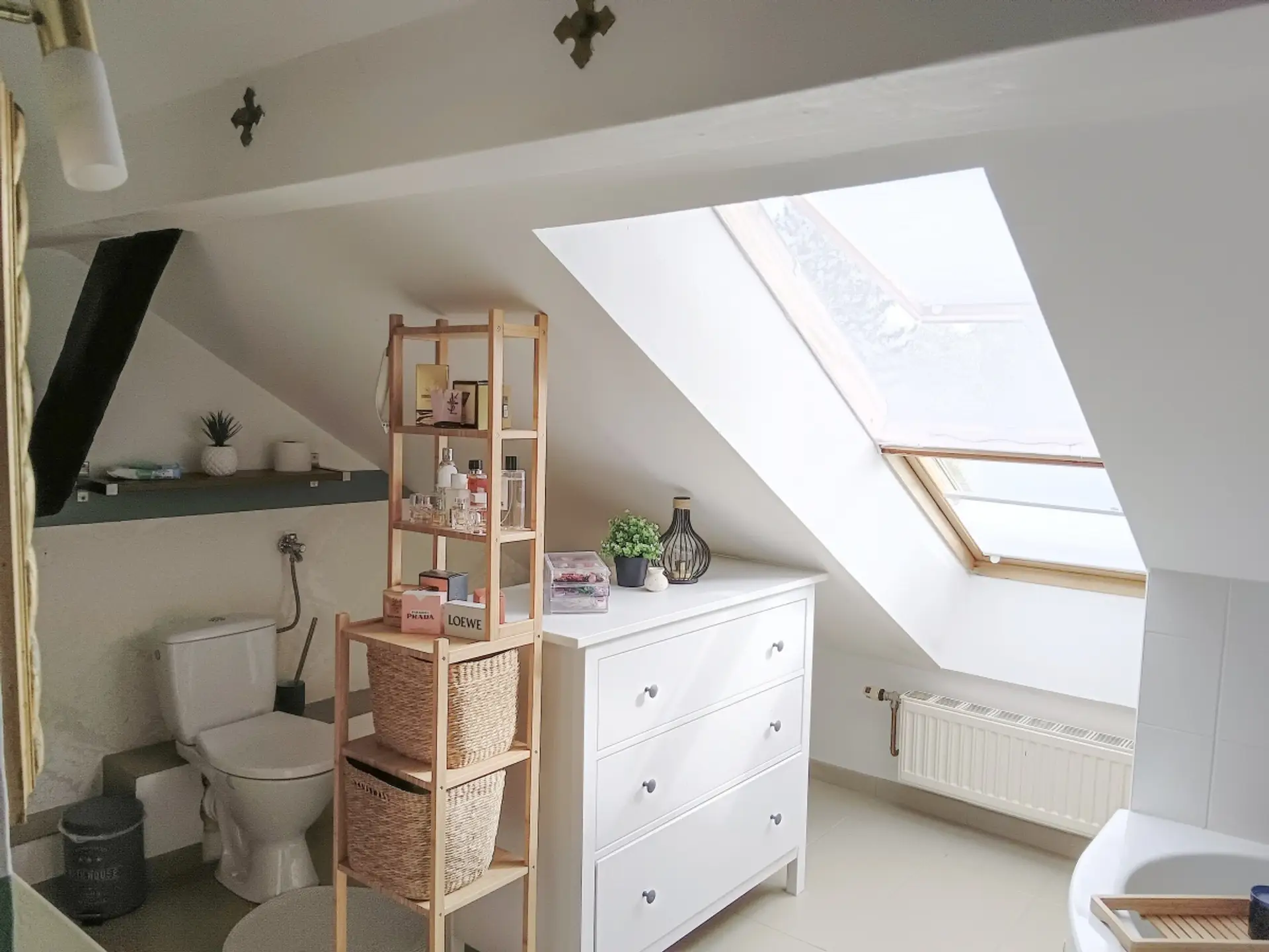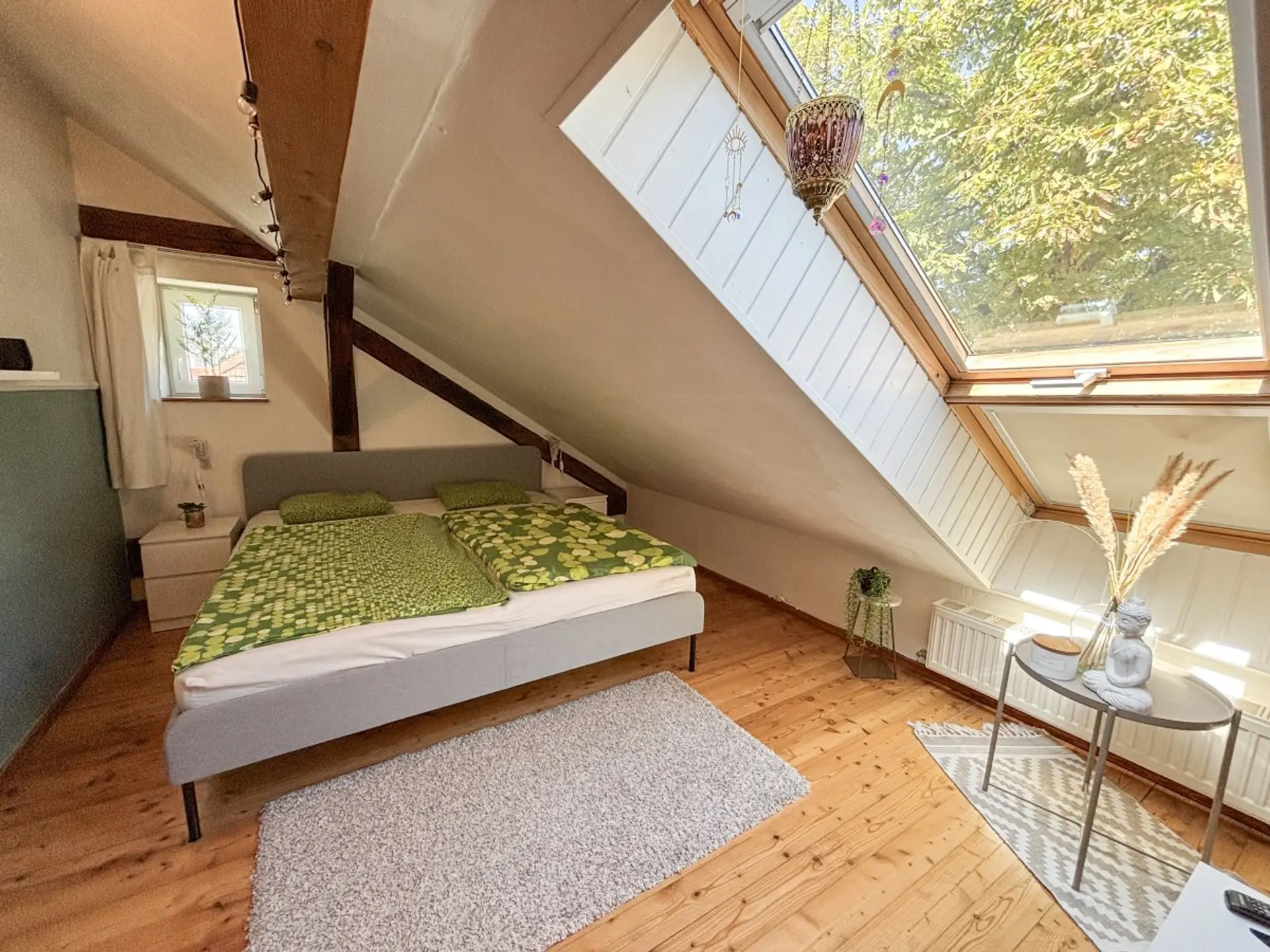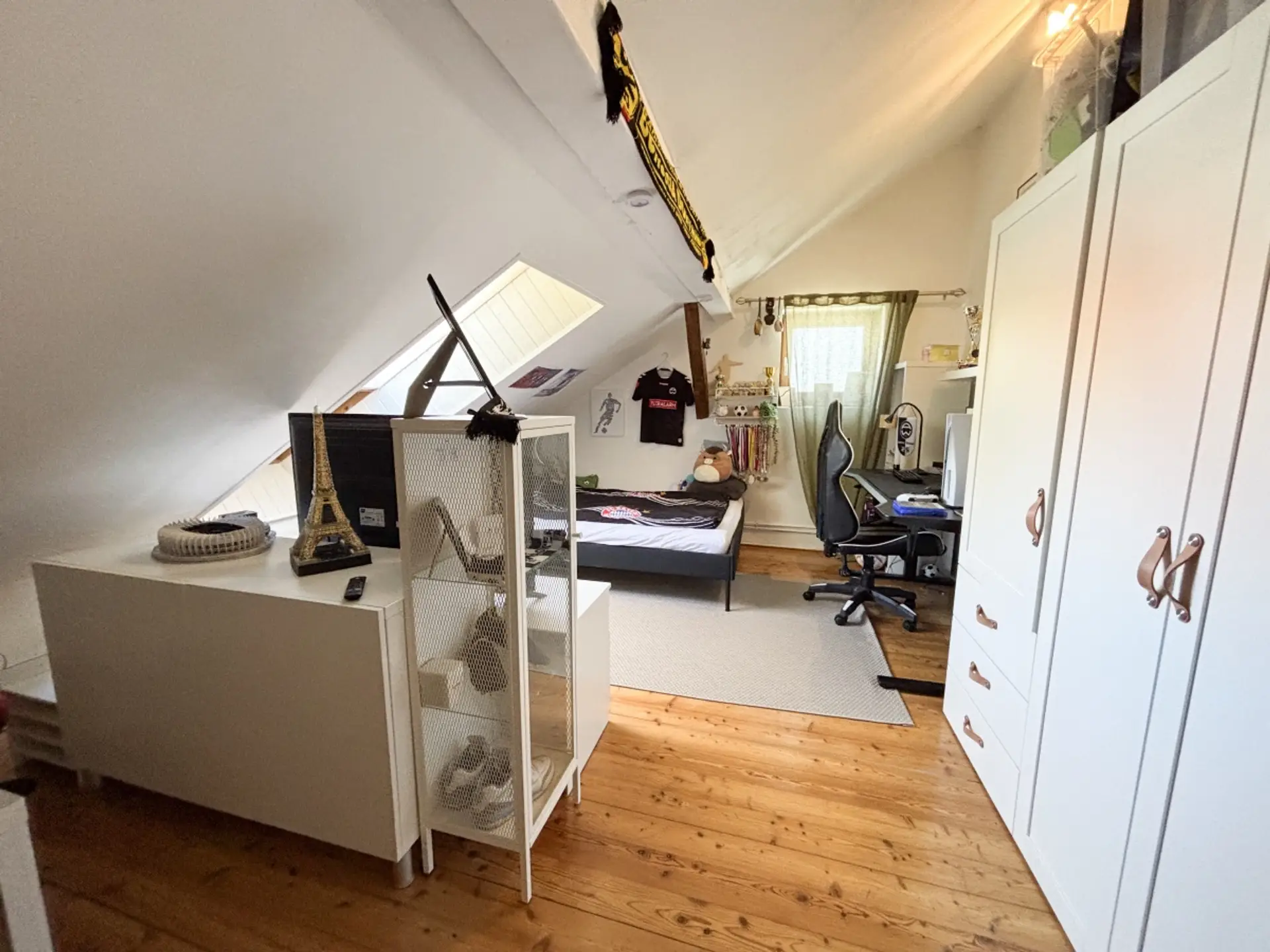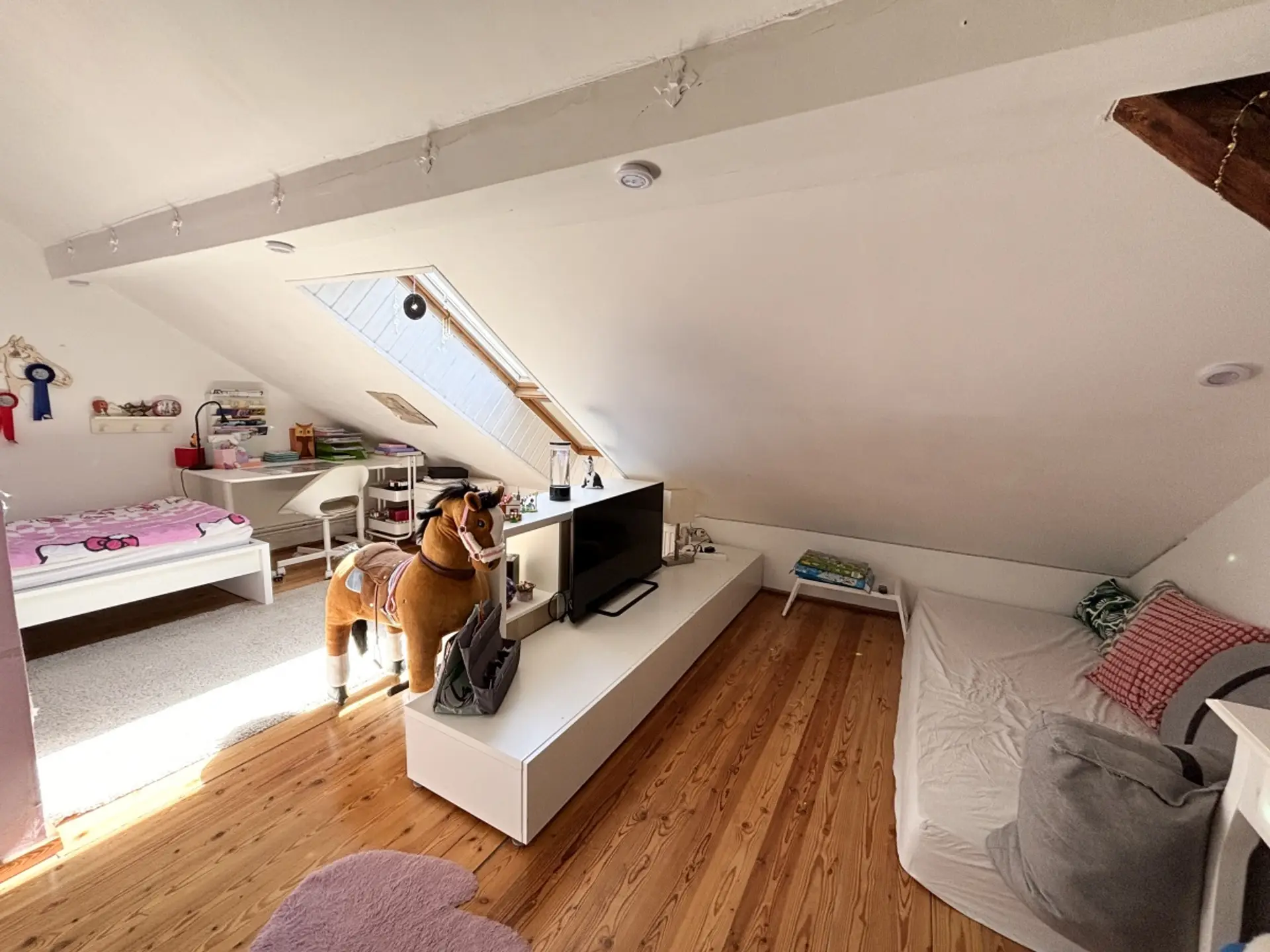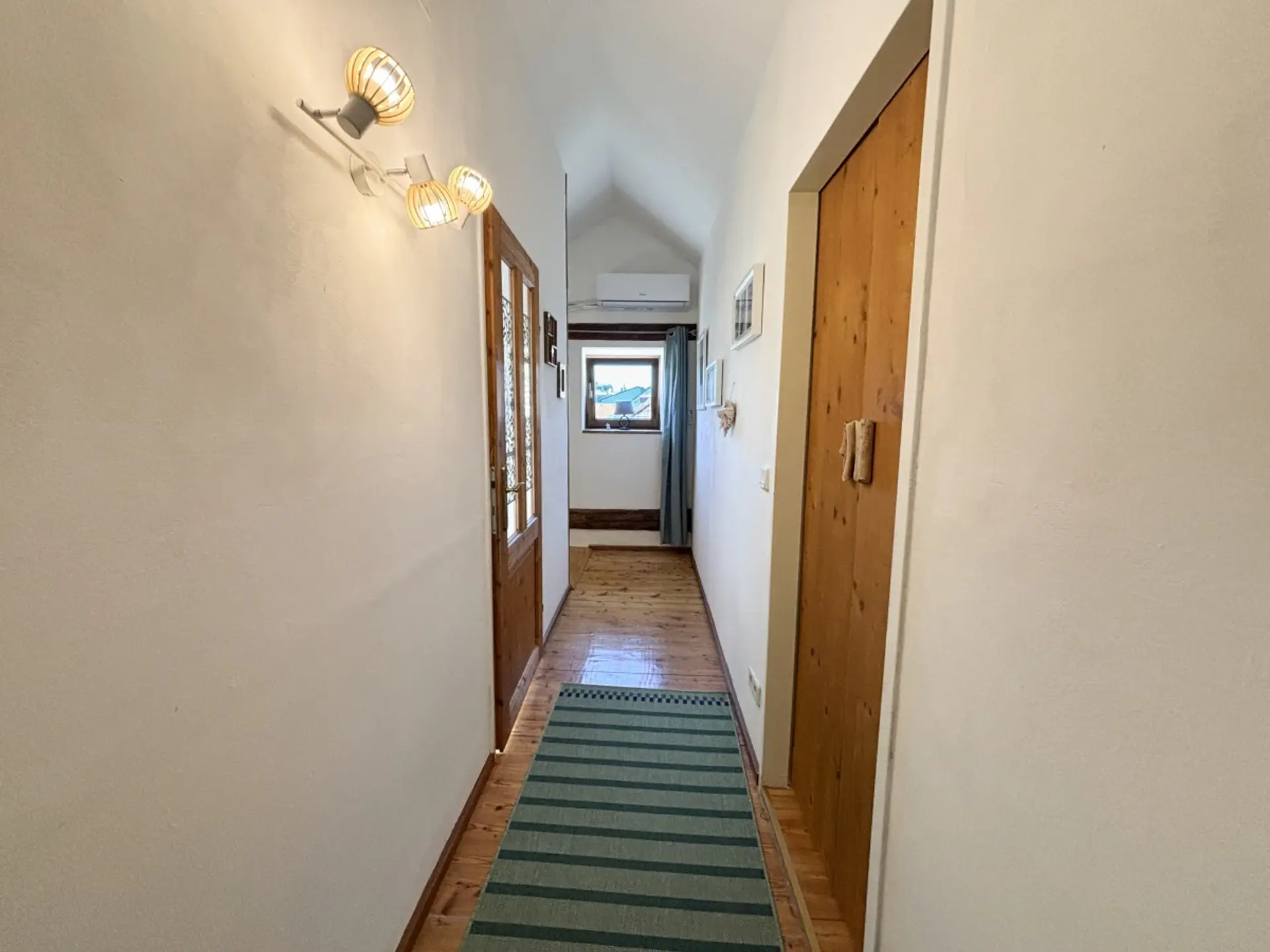 Im Erdgeschoss liegt ein helles Wohnzimmer, eine Küche mit offenem Abstellraum, ein Arbeitszimmer, ein Durchgangszimmer sowie ein weiteres Zimmer. Zusätzlich befinden sich hier ein WC und eine Waschküche. Im Jahr 2001 ausgebauten Dachgeschoss stehen drei Schlafzimmer und ein Badezimmer zur Verfügung. Die Ausstattung ist stimmig und gemütlich: Schiffsböden, Laminat und Fliesen wechseln sich ab und schaffen eine angenehme Wohnatmosphäre. Eine Klimaanlage sorgt im Sommer für Komfort.
