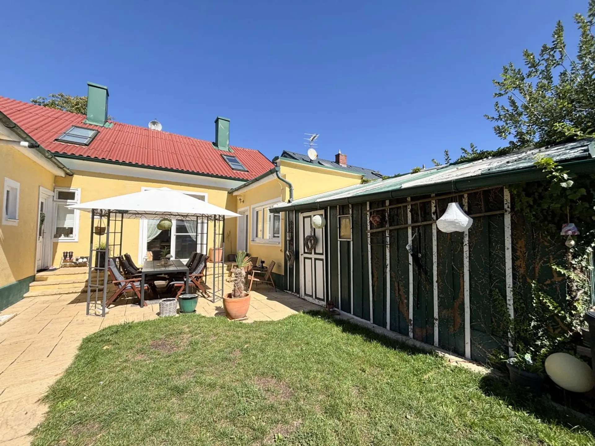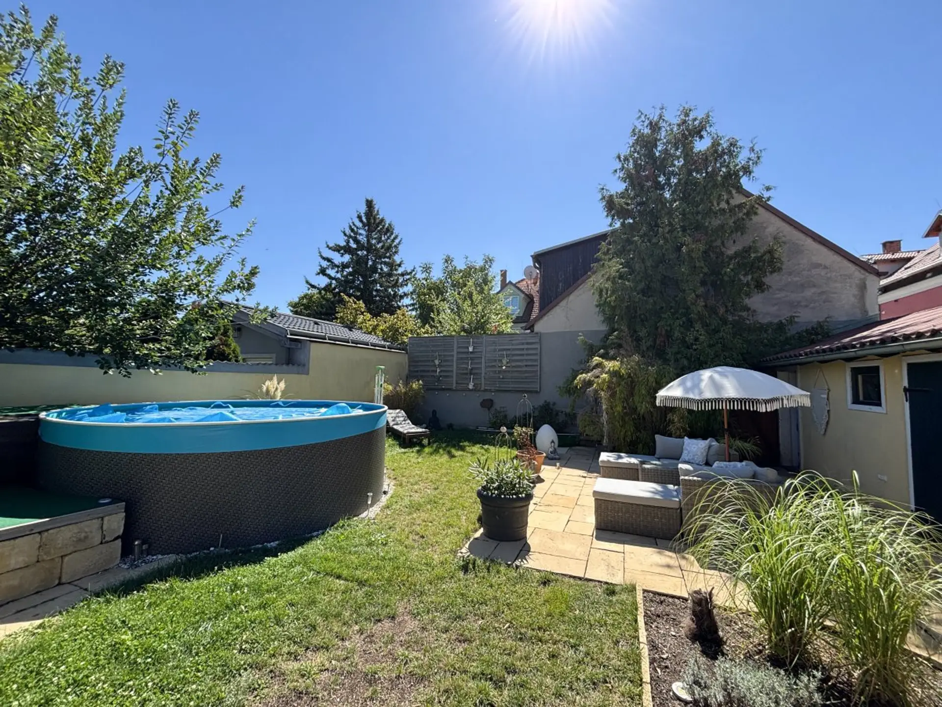 Der Garten ist ein echtes Highlight: Neben einer Terrasse mit Sitzbereich finden sich ein Pool, eine Gartenhütte und ein Nebengebäude, das viel Stauraum bieten. Besonders praktisch ist die integrierte Sauna – ein Platz zum Entspannen im eigenen zuhause. Ein kleiner Gewölbekeller ergänzt das Raumangebot, wobei dieser beim Stiegen Abgang etwas feucht ist.