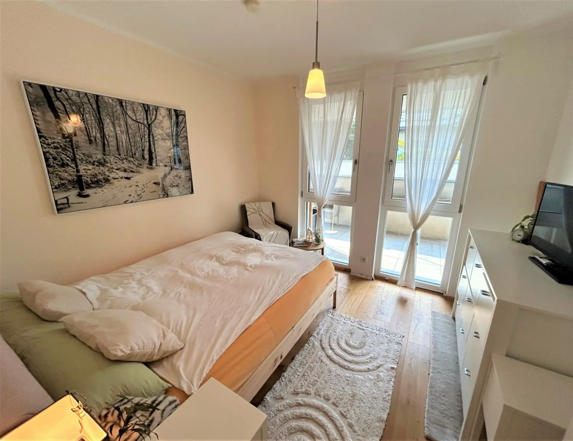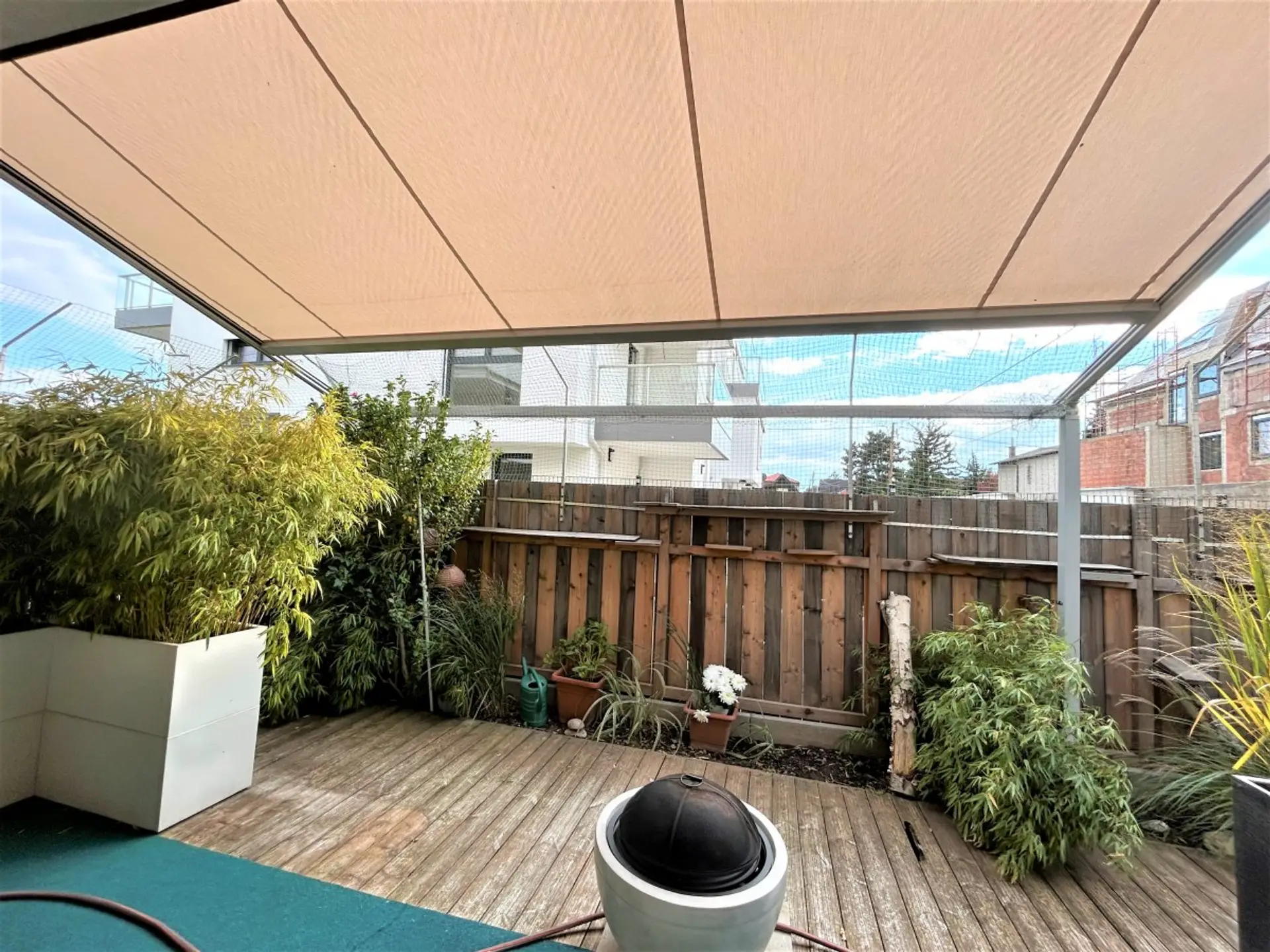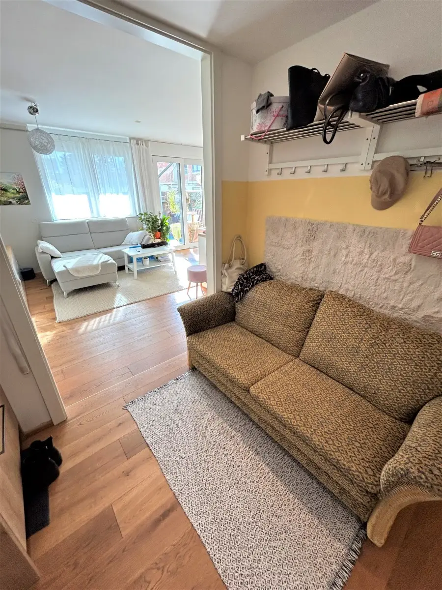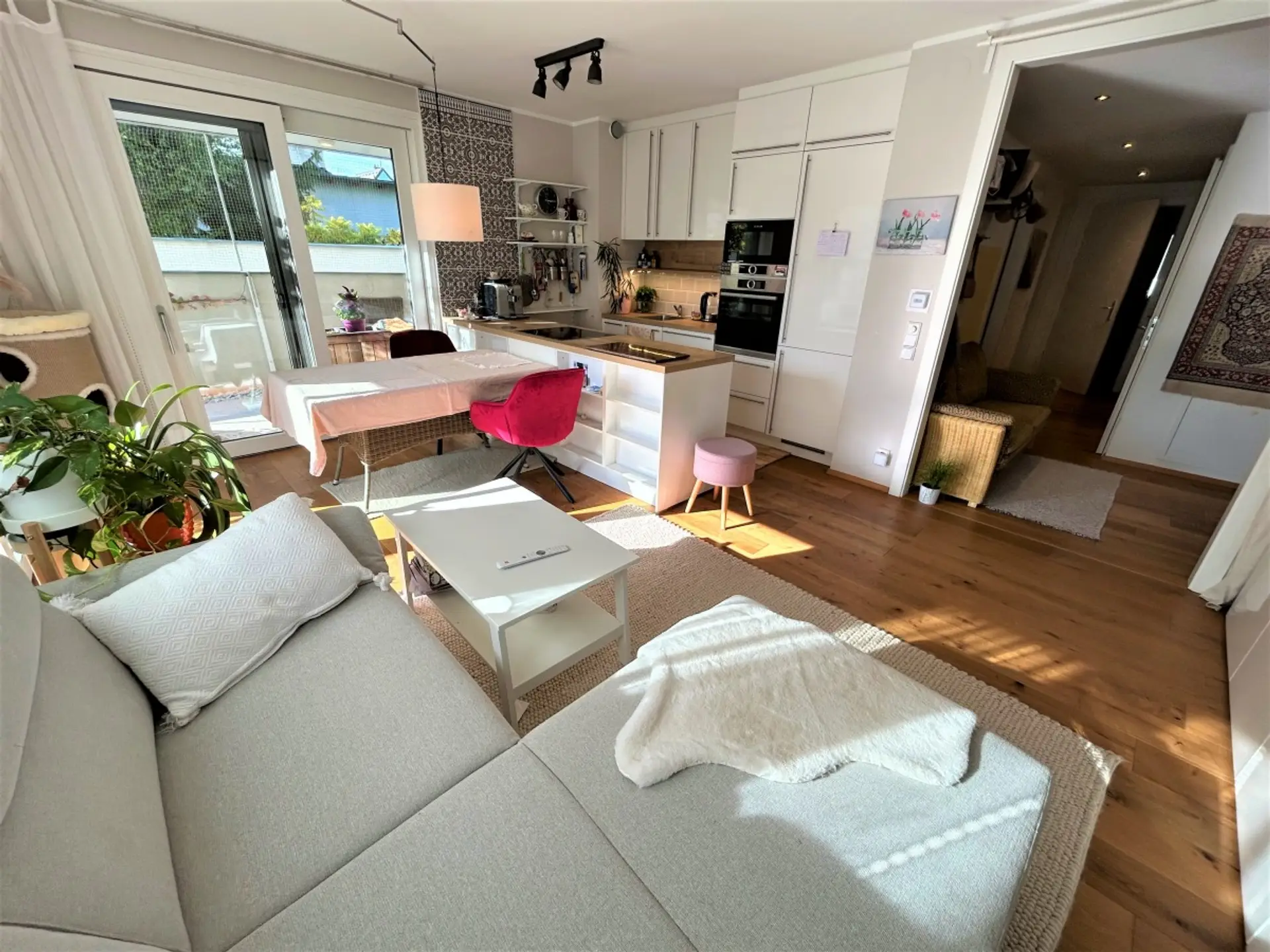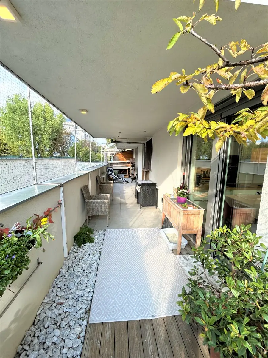 Der Garten (ca. 60 m²) gleicht einer schön verwachsenen Ruheoase und bietet von Früh bis Abend Sonne. Eine elektrische Markise ist vorhanden. ie Wohnung ist grundsätzlich in 2 Schlafzimmer (eines davon mit Ausgang in den hinteren Teil des Gartens), ein Bad, ein WC, ein Abstellraum sowie ein Wohn – Ess – Zimmer mit großen Schiebetüren nach draußen, aufgeteilt.