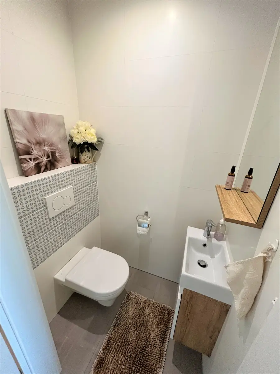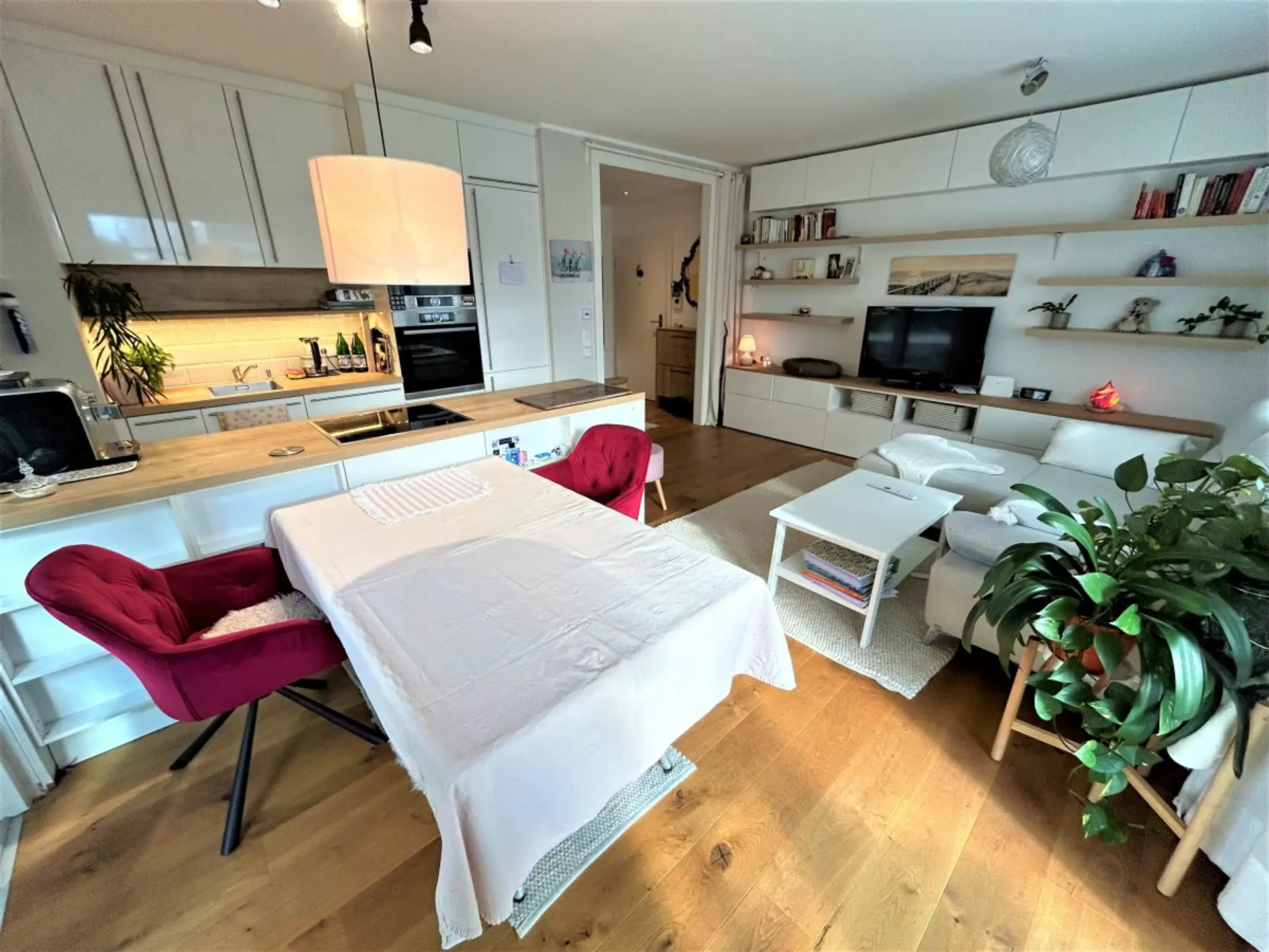 Es wurden 3-fach verglaste Holz/Alu – Fenster mit elektrischer Außenbeschattung verbaut. Die Küche ist mit Bosch – Geräten ausgestattet und durchdacht gestaltet.