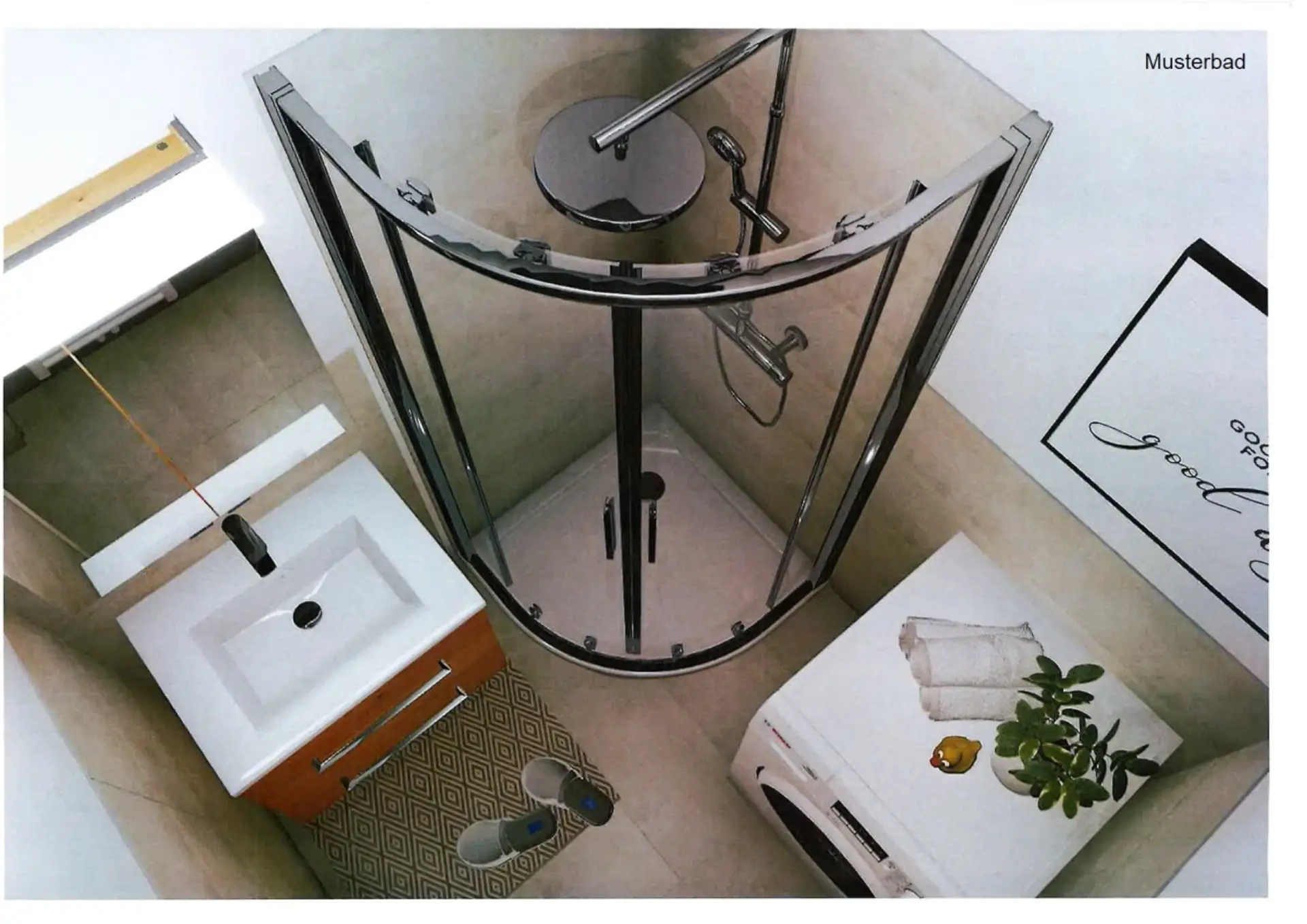 neues Bad mit Dusche, Waschtisch und Waschmaschinenanschluss