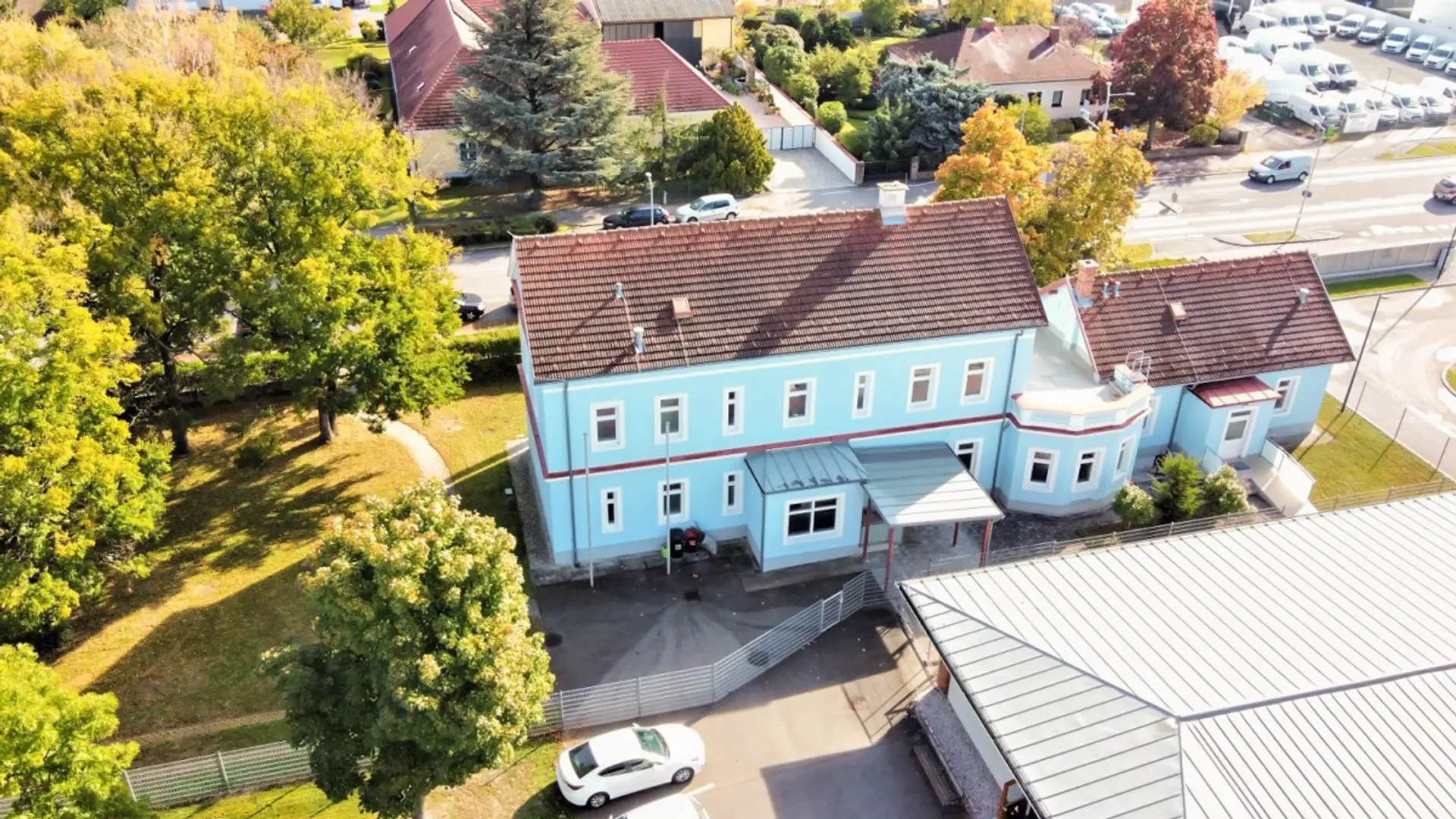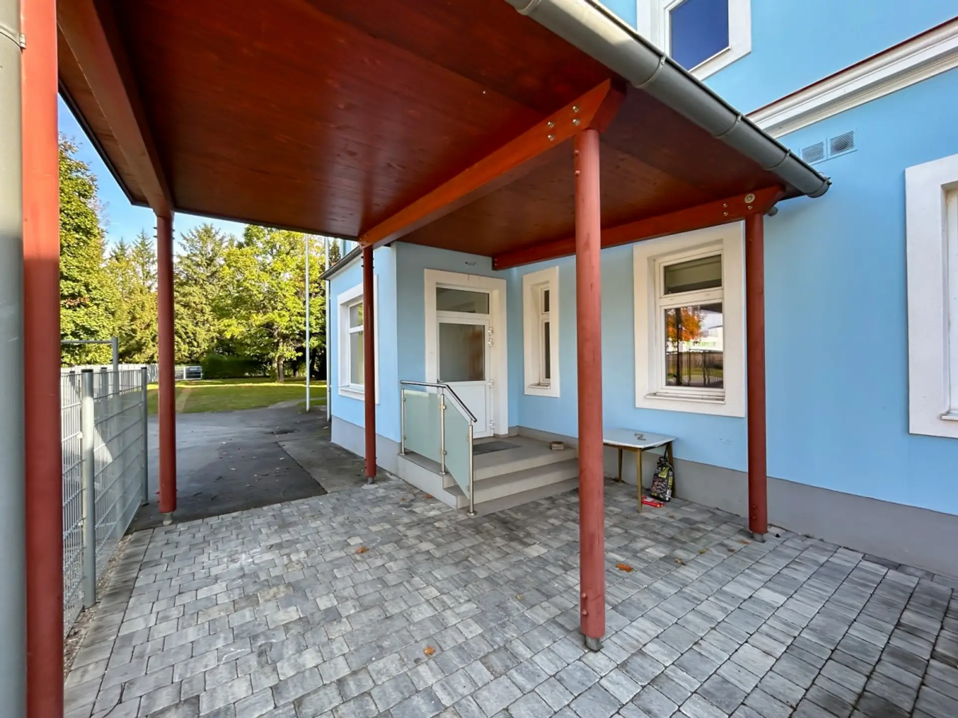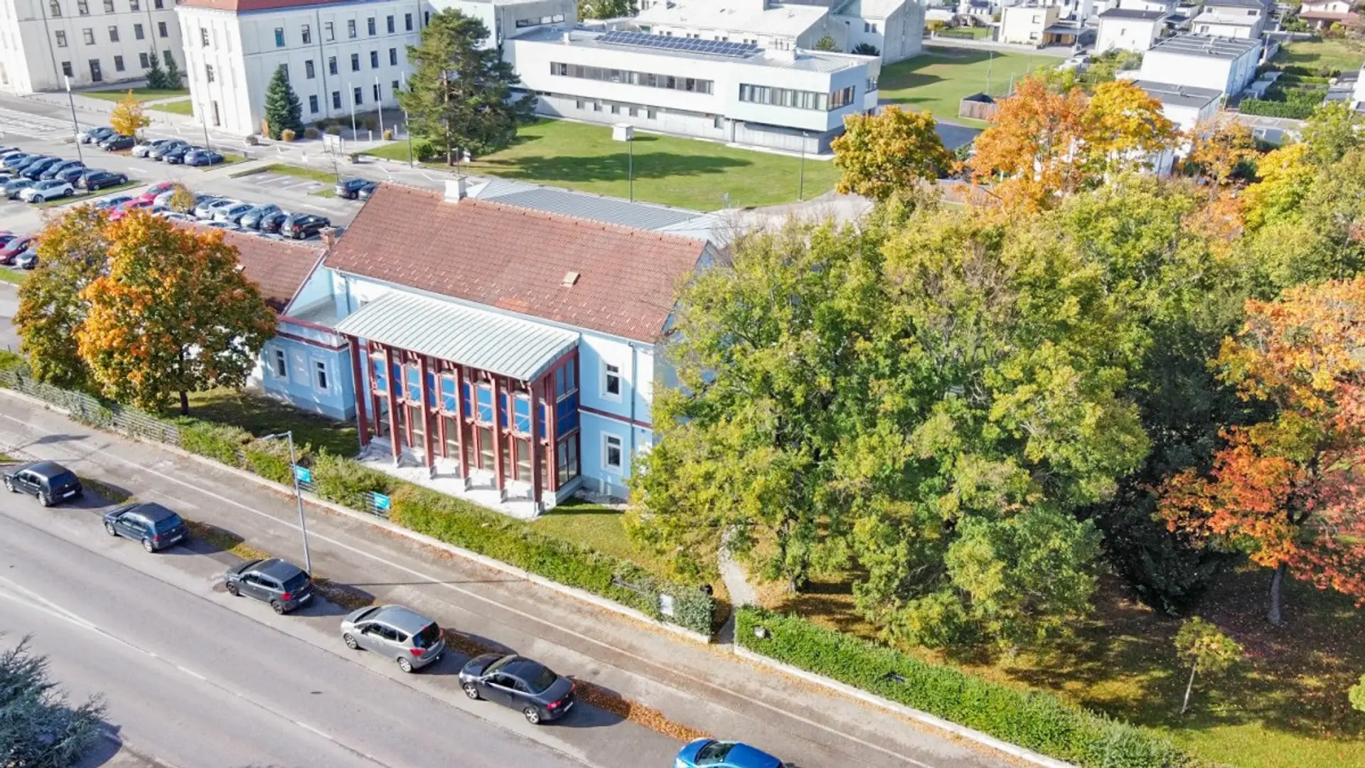 Das Erd- und Obergeschoß ist jeweils in 4 helle Räume, wobei einige davon getrennt werden können, geteilt. Außerdem sind ausreichend WCs (8) für Damen und Herrn und ein Badezimmer vorhanden. Im Erdgeschoß liegt eine gut ausgestattete Küche mit Aufenthaltsbereich und eigenem, barrierefreiem Eingang, wobei dieser direkt an die Berufsschule Theresienfeld grenzt. Das Obergeschoß ist nicht barrierefrei.