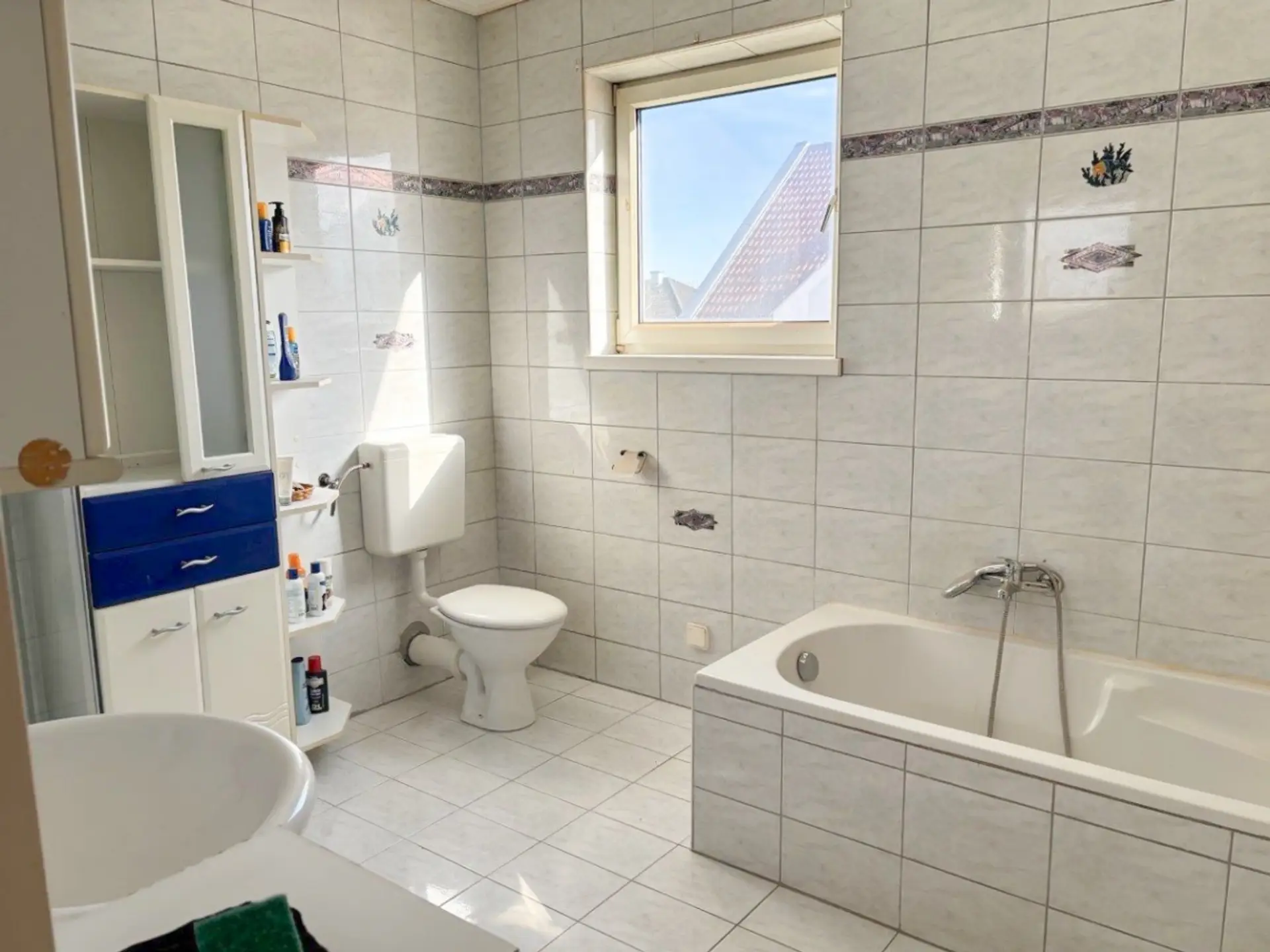 Die Bodenbeläge bestehen aus Fliesen und Laminat.
