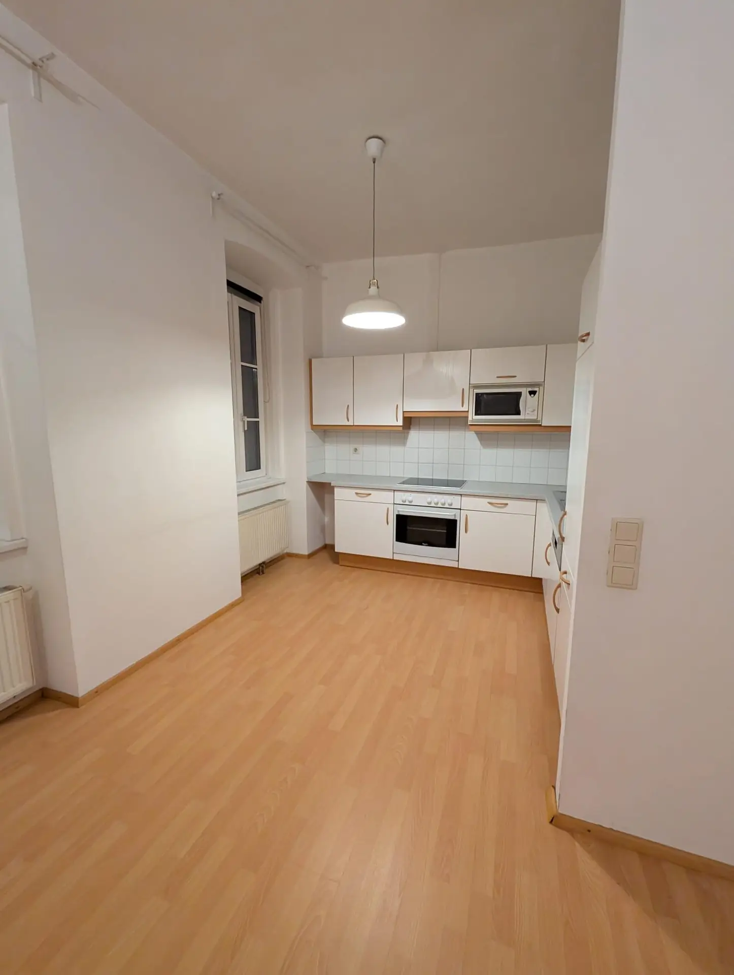 Inmitten der Stadt, um einen denkmalgeschützten Stadtturm, liegt diese Mietwohnung in der Nähe des Wiener Neustädter Doms. Die Wohnung ist mit einem Buche-Laminatboden und Buche-Türen ausgestattet und verfügt über eine vollständige Kücheneinrichtung, die einen Geschirrspüler, einen Mikrowellenherd, einen Elektroherd mit Ceranfeld, einen Kühlschrank und eine Spüle umfasst.