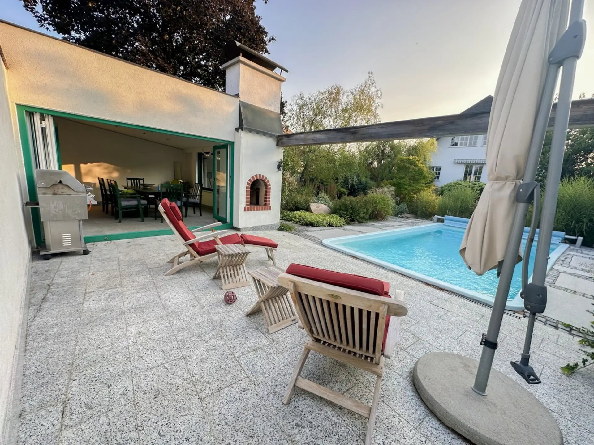 - solarbeheizter Pool mit überdachtem Poolhaus
