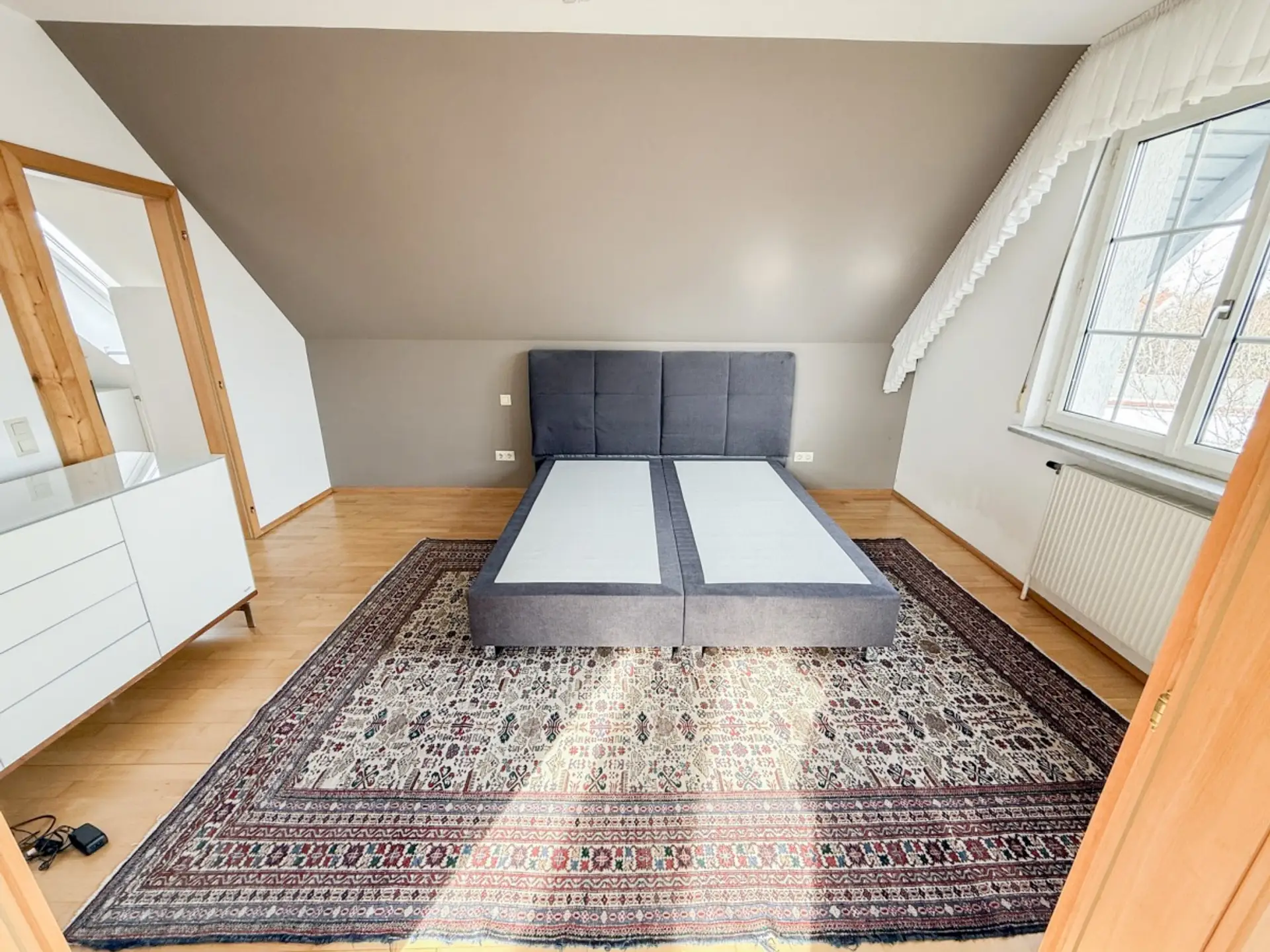 Im Obergeschoss finden Sie ein großes Elternschlafzimmer mit angrenzendem Schrankraum und Durchgang ins Badezimmer und 2 weitere Schlafzimmer. Das große Badezimmer mit Dusche, Badewanne und 2 Waschbecken und der zentrale Vorraum runden das Platzangebot auf dieser Ebene perfekt ab.