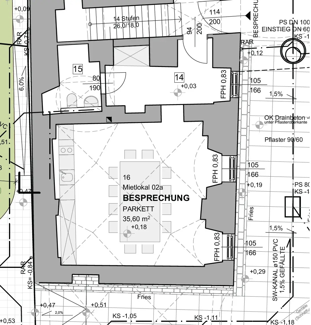 Dieses gepflegte Geschäftslokal mit einer Nutzfläche von ca. 35,6 m² befindet sich im Erdgeschoss eines Wohn- und Geschäftshauses in absolut zentraler Lage von Wiener Neustadt. Trotz der Innenstadtlage liegt das Objekt ruhig in einem Innenhof und bietet dadurch eine angenehme, ungestörte Arbeitsatmosphäre. Das Lokal ist barrierefrei zugänglich und gliedert sich in einen Vorraum, der sich ideal als Empfangs- oder Wartebereich eignet, ein separates WC sowie ein großzügiges Zimmer mit Blick in den Innenhof. Der Parkettboden verleiht dem Raum eine warme und gepflegte Ausstrahlung. Beheizt wird mittels Fernwärme – die Heizkosten sind bereits in der Miete inkludiert.