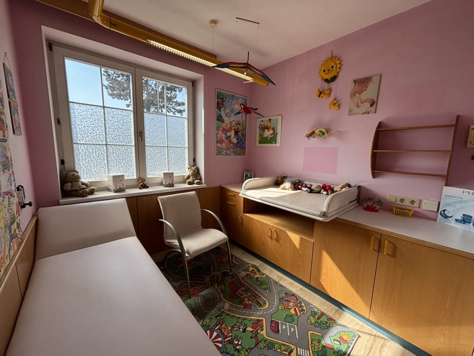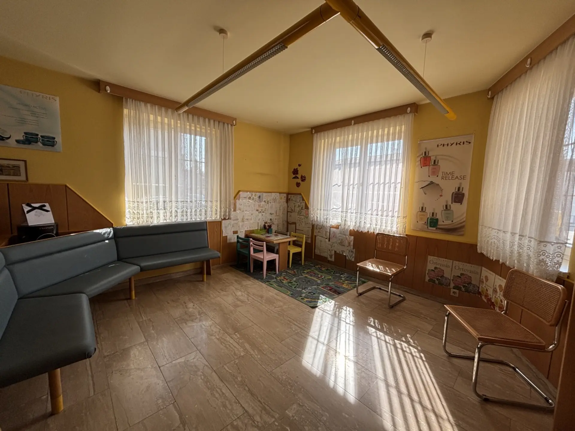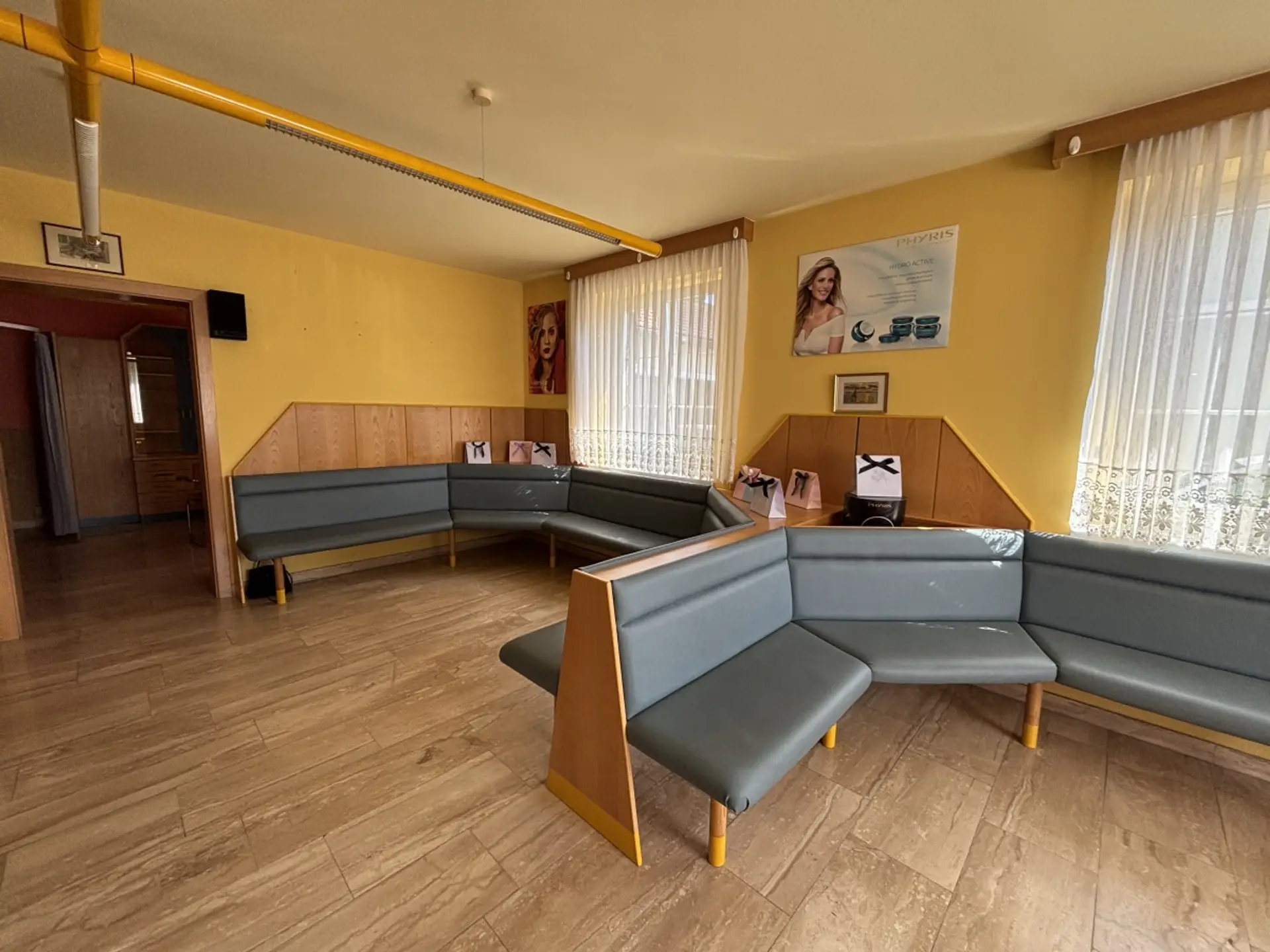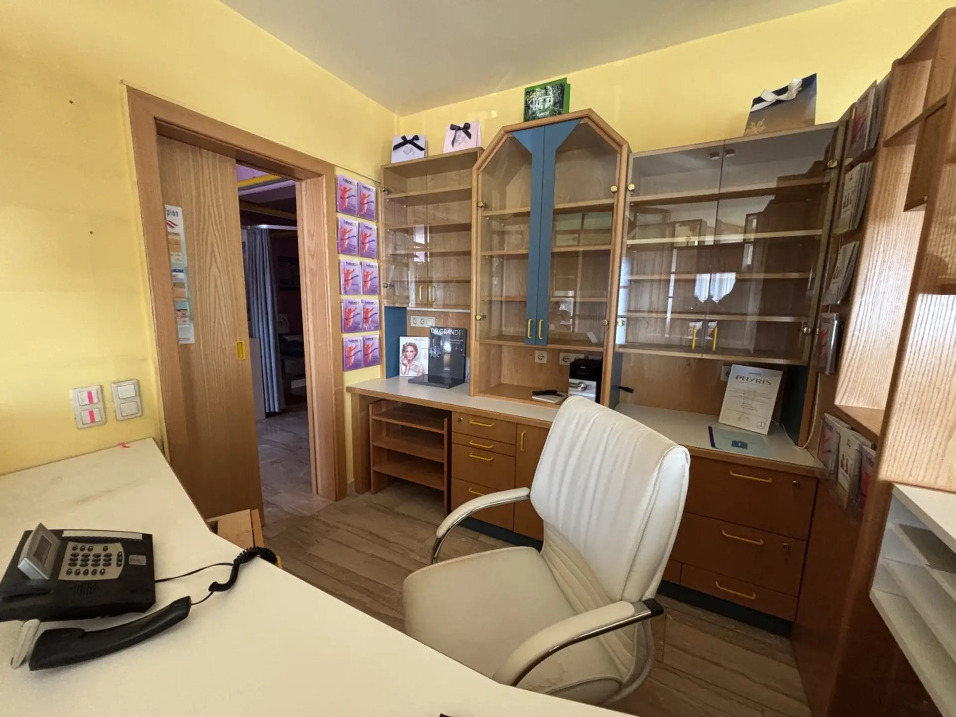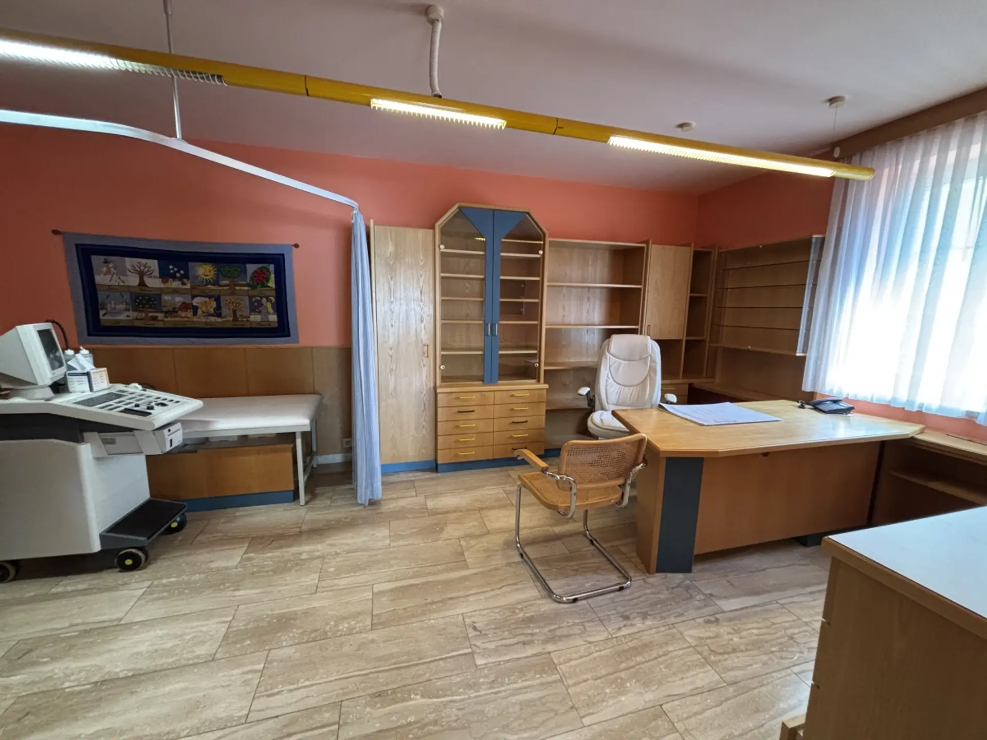 Die Nutzfläche beträgt ca. 103,87 m² und überzeugt durch eine funktionale Raumaufteilung. Beim Betreten gelangt man in einen großzügigen Empfangsbereich, der sich hervorragend als Empfang, Wartebereich oder Verkaufs- beziehungsweise Bürofläche nutzen lässt. Insgesamt stehen drei separate Räume zur Verfügung, die flexibel als Behandlungsräume, Büros oder Arbeitsräume genutzt werden können. Zusätzlich verfügt das Objekt über eine Küche sowie ein WC.