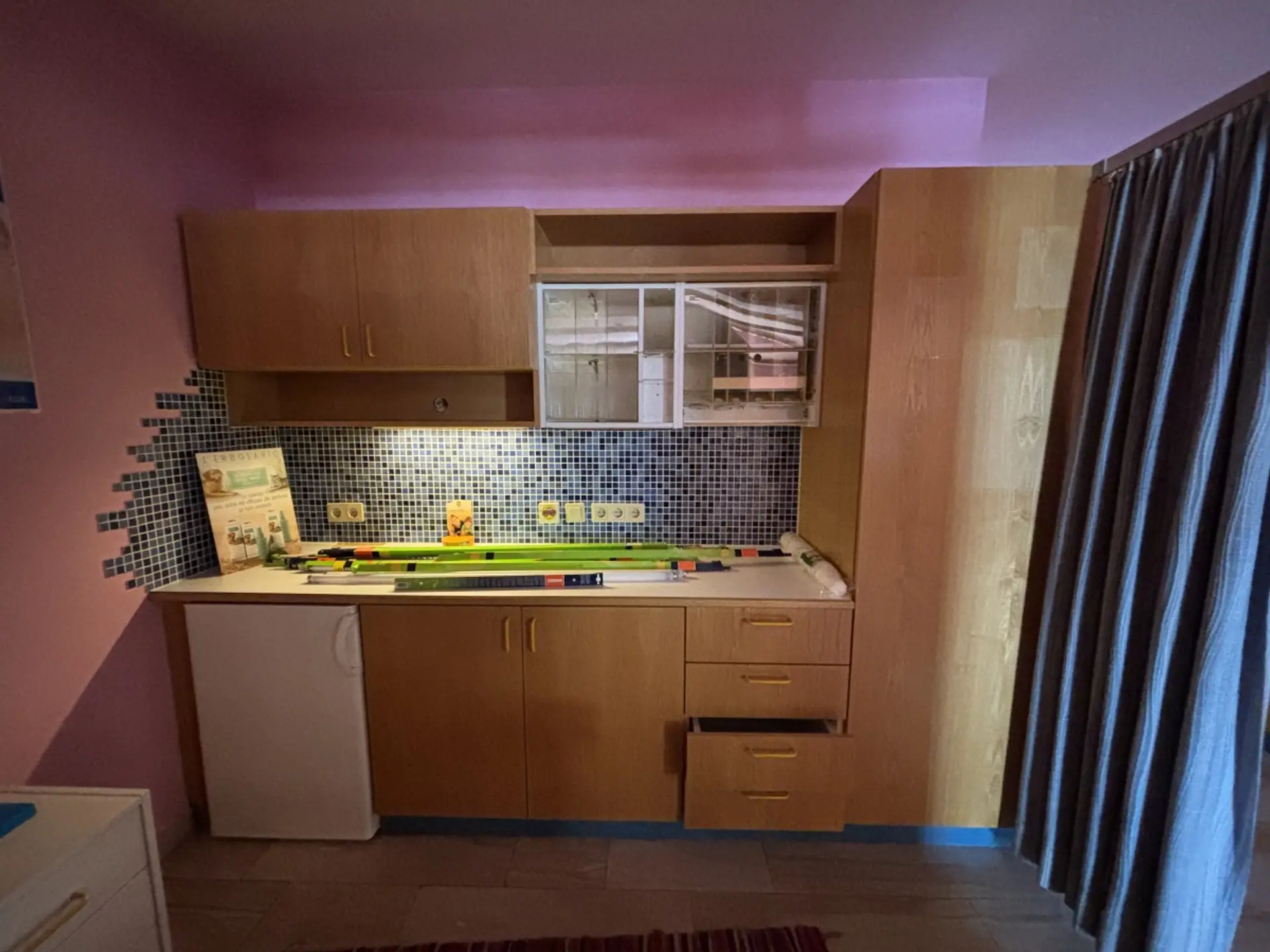 Das vorhandene Mobiliar kann – mit Ausnahme der Einbaumöbel – auf Wunsch entfernt werden.