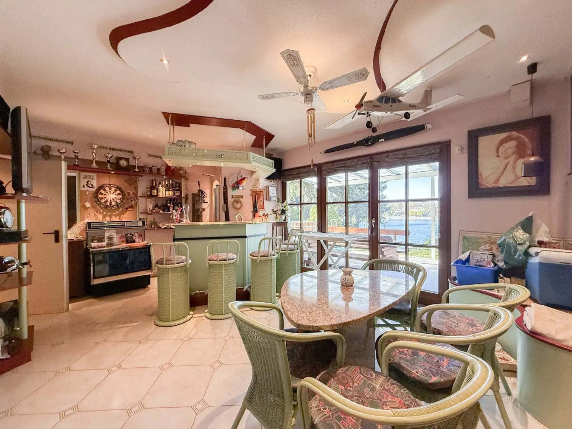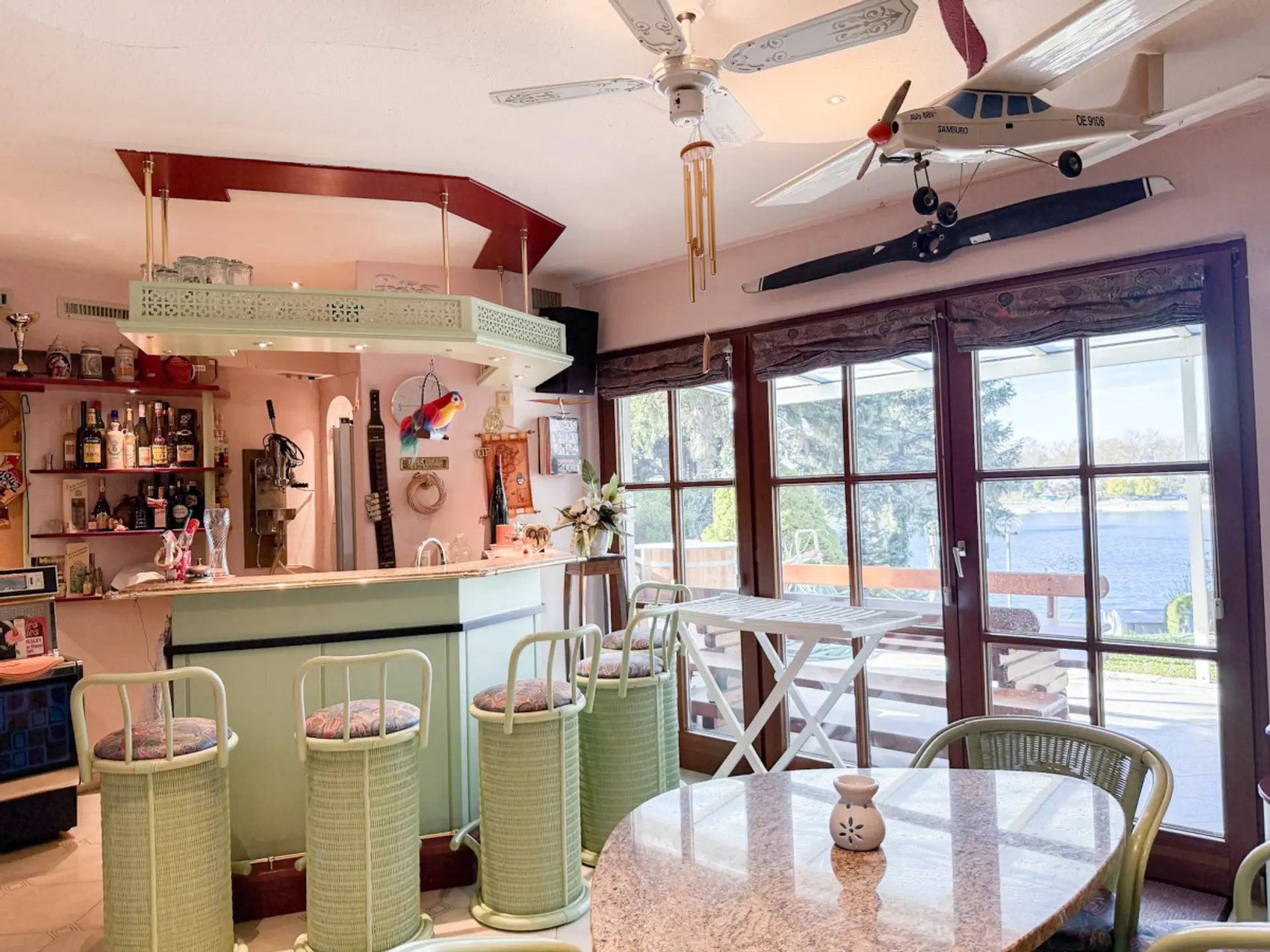 - großzügiger Barbereich mit Zugang zur überdachten Terrasse mit Seeblick