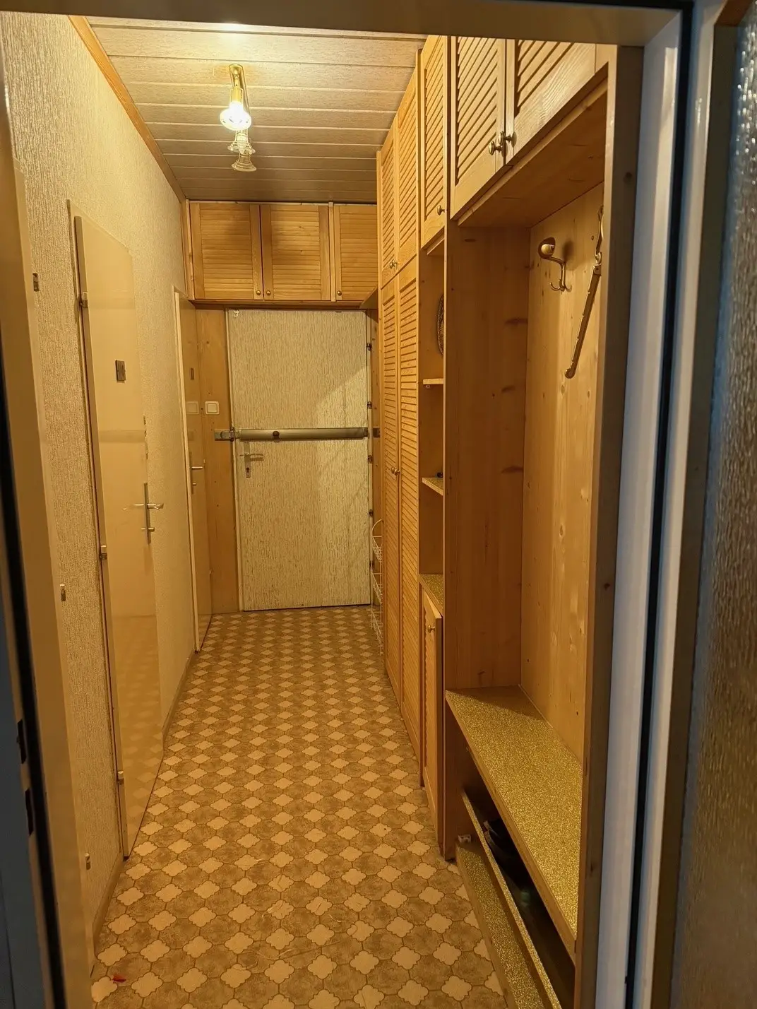 Raumaufteilung: Vorraum, WC, Badezimmer, Abstellraum, Küche (älter, aber gepflegt), Wohnzimmer und Schlafzimmer